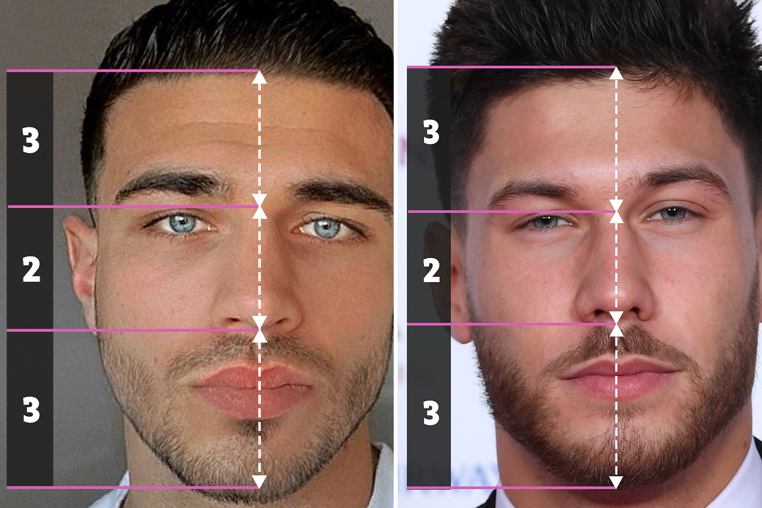 ✔ **Facial Thirds** – Your face should be **evenly divided** into three sections: